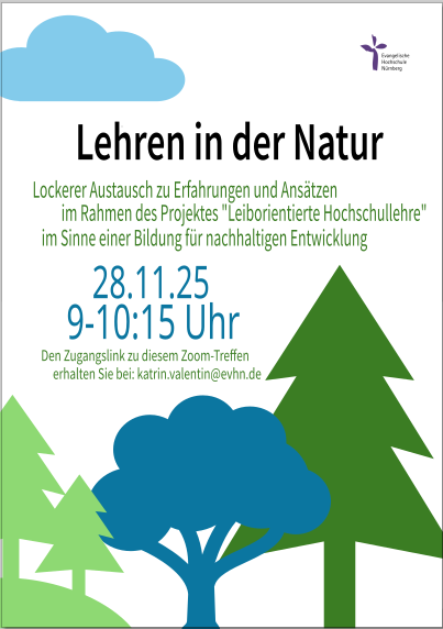 Im Rahmen des Projektes "Leiborientierte Hochschullehre" tauschen sich Lehrende verschiedener Hochschulen zu Möglichkeiten und Erfahrungen aus, Lehrveranstaltungen im Freien durchzuführen. Der Schwerpunkt liegt dabei auf Studiengängen zu Sozialer Arbeit, erschöpft sich jedoch nicht darin. Bei Interesse an einer Teilnahme melden Sie sich bitte bei Prof. Dr. Katrin Valentin (katrin.valentin@evhn.de).