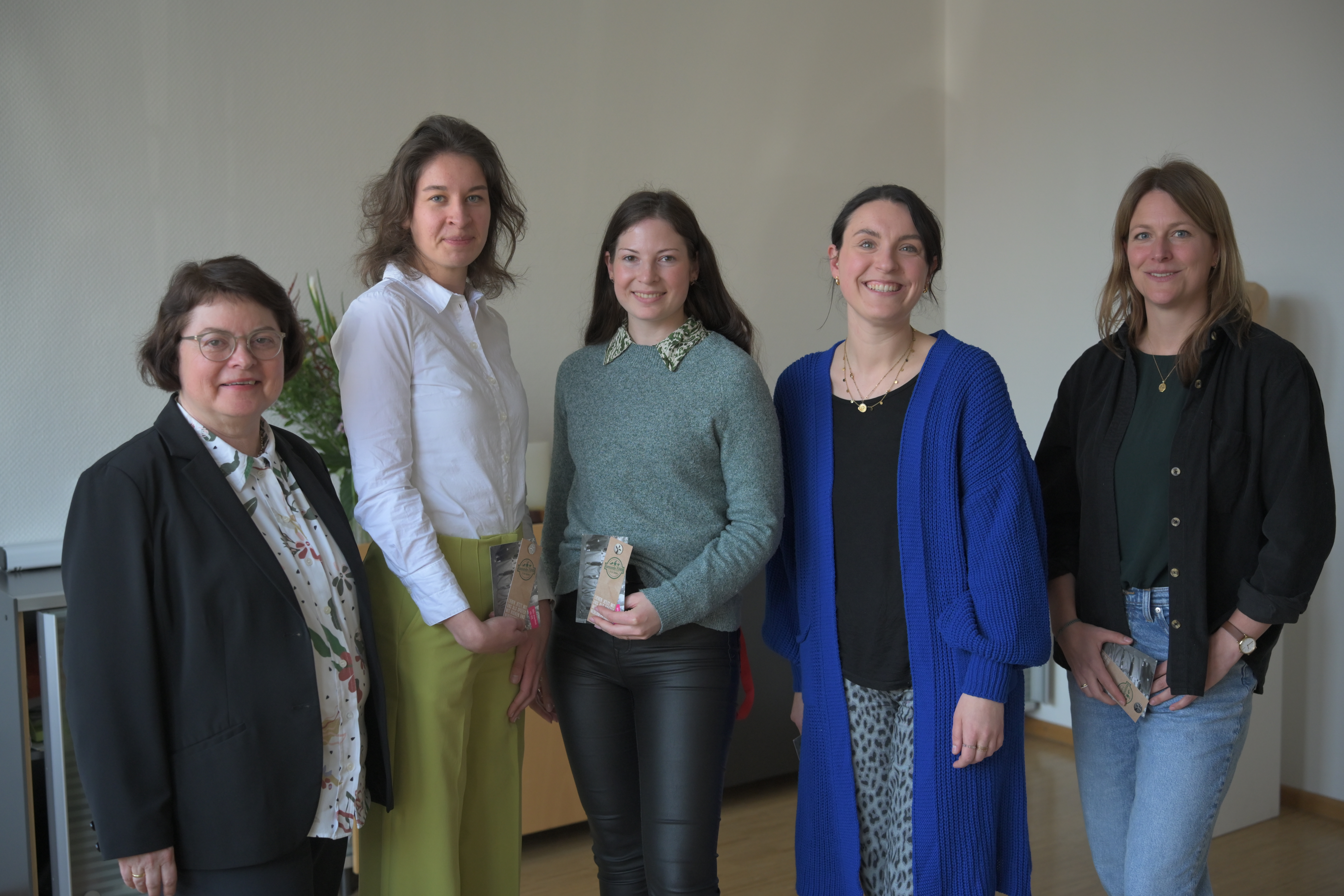 Mit Beginn des neuen Semesters wurden fünf neue Mitarbeiterinnen begrüßt, die entweder im Laufe des Wintersemesters an der EVHN angefangen haben oder direkt mit Start des Sommersemesters 2026. Wir begrüßen ganz herzlich: Prof. Dr. Bettina Glunde, Professorin für Gesundheits- und Pflegepädagogik, Johanna Weiß M.A., Lehrkraft für besondere Aufgaben im Bachlelorstudiengang Pädagogik der Kindheit, Mariya Landa B.A. Verwaltungsmitarbeiterin im Prüfungsamt, Annette Hummel M.A., ebenfalls Lehrkraft für besondere Aufgaben im Studiengang Pädagogik der Kindheit und Dr. Elisabeth Rose, Dipl.-Psychologin, als wissenschaftliche Mitarbeiterin mit Lehraufgaben (im Bild v. l. n. r.). Schön, dass Sie da sind!